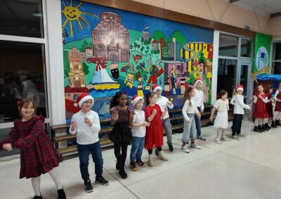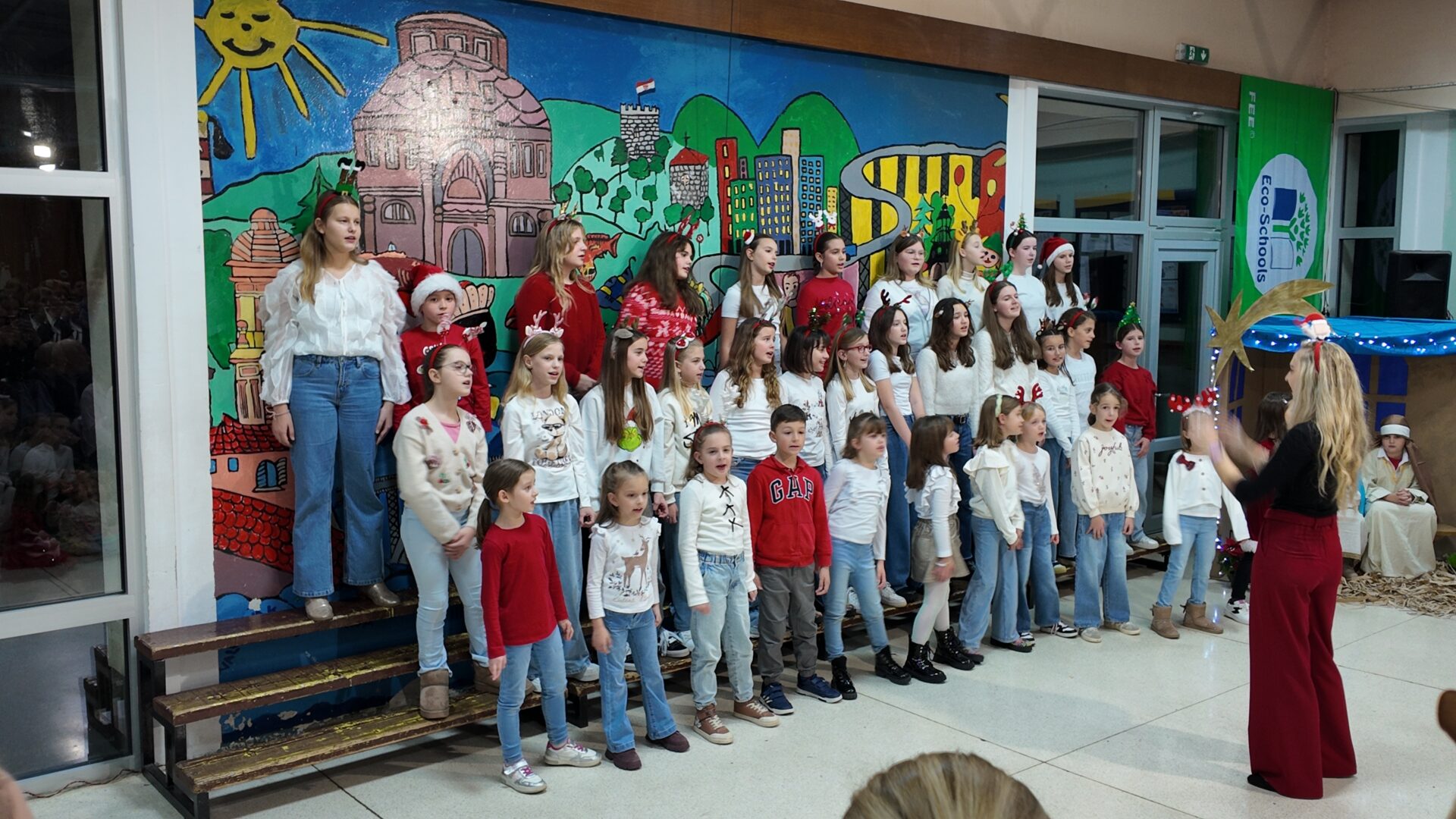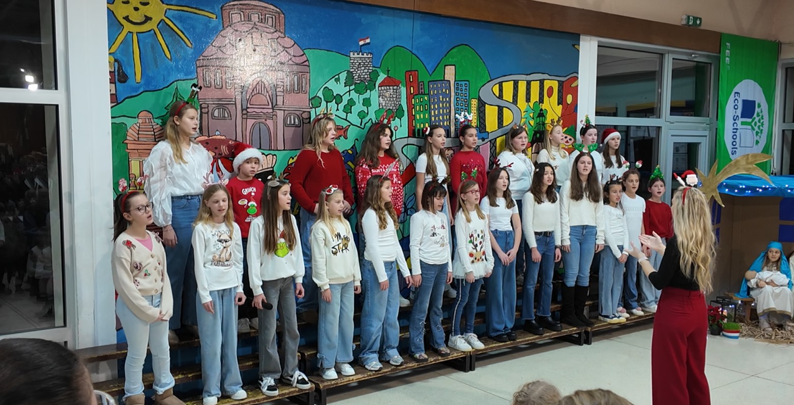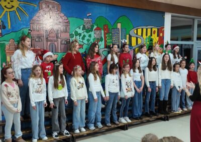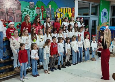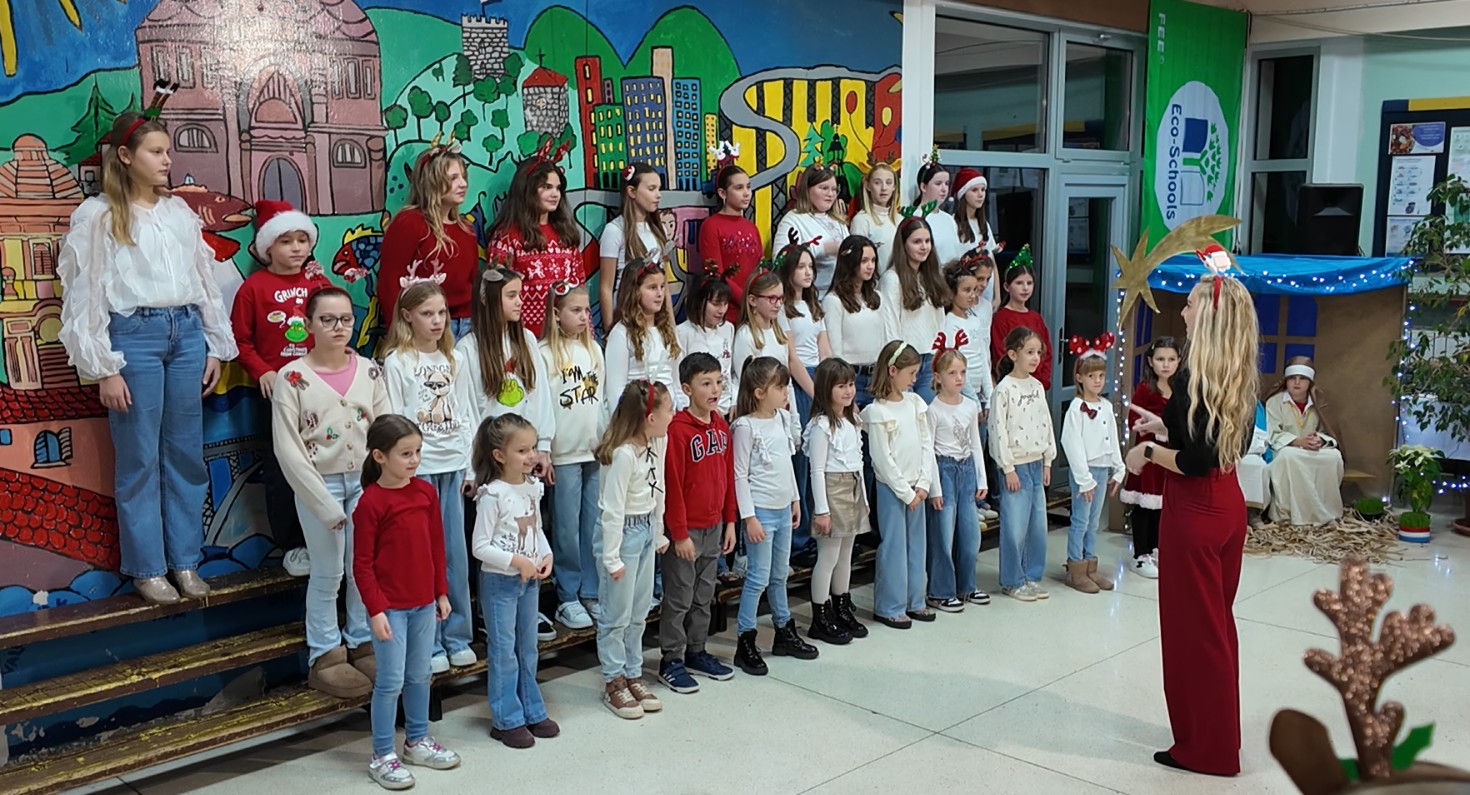 Završnica programa započela je u 18.30 sati i donijela je moderniji zvuk i mnogo plesne energije. Učenici 4.a i 4.b razreda oduševili su koreografijama na poznate hitove poput “Ching, Ching, Ching”, “It’s Time” te vječni božićni klasik “All I Want for Christmas”. Školski zbor je za kraj pripremio svjetske uspješnice “Last Christmas” i “Snowman”, a večer su zaključili emotivnom izvedbom pjesme “Božić je judi”.