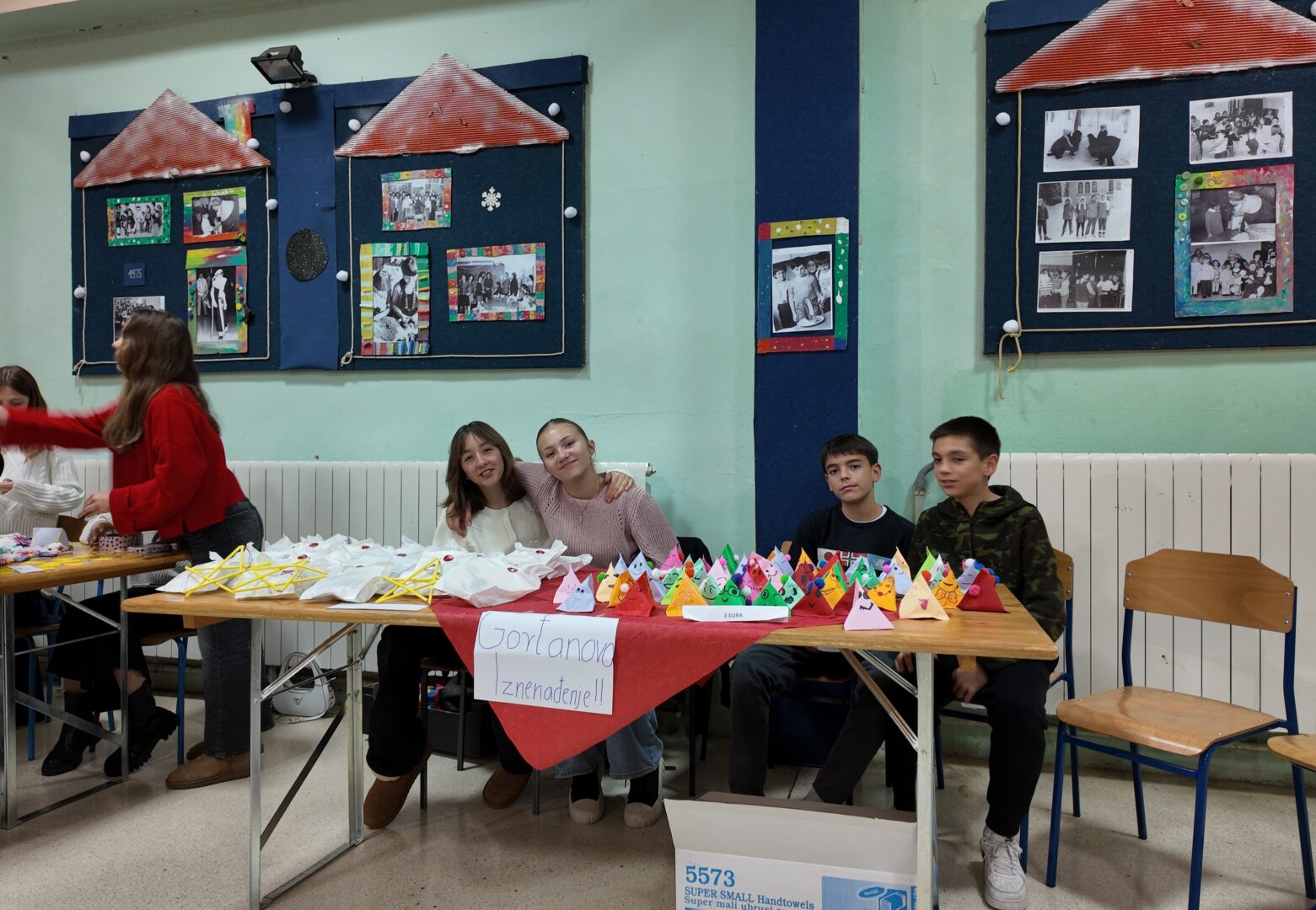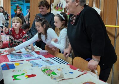 Osim na pozornici, sajam je obilježila i posebna živost u izložbenom dijelu kojeg je osmislila naša školska zadruga “Josip Kulfanek”. Posjetitelji su mogli razgledati ručne radove naših učenika, od božićnih ukrasa do čestitki, koje su vrijedno izrađivali tijekom cijelog prosinca te za to dati dinaciju. Osobit interes posjetitelji su pokazali za bogatu tombolu na kojoj je svaki kupon dobivao.