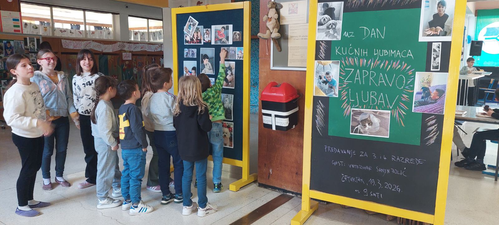 U holu Škole knjižničarka Daniela Samaržija uredila je prigodne panoe sa slikama kućnih ljubimaca naših učenika, koje su Gortanovci proteklih tjedana donosili svojim učiteljima.