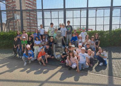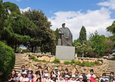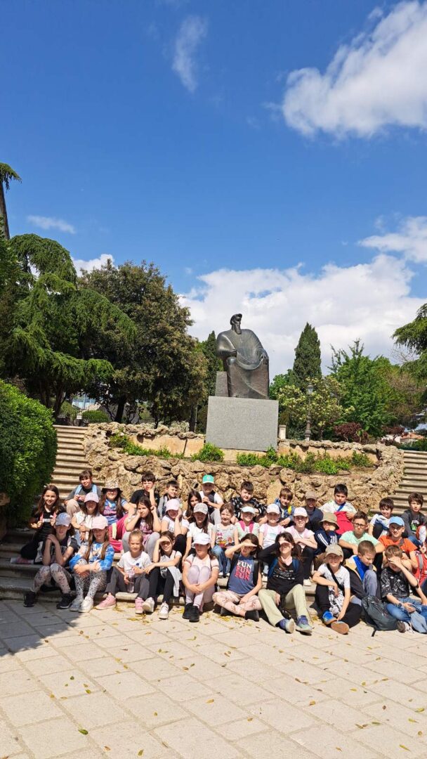 Kako biti u Šibeniku, a ne vidjeti spomenik Draženu Petroviću, košarkaškom Mozartu? Prolazeći Baldekinom, gradskom četvrti Draženovog djetinjstva, učenici su se fotografirali kraj igrališta i spomenika svjetski poznatog košarkaša.