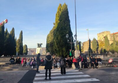 Nakon muzeja, uslijedila je vožnja prema centru gdje smo uz stručno vodstvo razgledali grad. Prošetali smo se srcem grada – Piazzom dell’Unita, najvećim trgom u Trstu oblika slova “U”. Inače predstavlja najveći europski trg smješten uz morsku obalu. Kroz šetnju u okolnim uličicama vidjeti ćemo brojne poznate kavane. Najstarija je svakako Caffe Tommaseo (1830. godine). U blizini trga smješteno je i Verdijevo kazalište, uz koje se nalazi još jedna od mnogih poznatih kavana. Uz sve navedeno, vidjeli smo poznati Ponte Rosso te Canal Grande koji nalikom podsjeća na one u Veneciji. U razgledu grada istaknula se pomorska luka, katedrala San Giusto i Rimski amfiteatar. Za kraj, učenici su pojeli tipično talijansko jelo, pizzu u restoranu i kupili poneki suvenir.