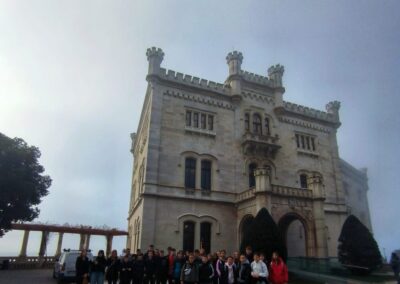 Učenici su najprije razgledali bajkoviti dvorac Miramare gdje je uslijedilo vođeno razgledavanje dvorca, smještenog na samom rubu mora, okruženog prekrasnim botaničkim parkom. Dvorac je dao izgraditi habsburški nadvojvoda Ferdinand Maksimilijan. Najvećim dijelom dovršen je 1860. godine, kada je Maksimilijan ondje uselio sa svojom suprugom Charlottom od Belgije. Nakon tragične sudbine graditelja Miramarea, dvorski kompleks dugo se koristio za povremene boravke Habsburgovaca, prije svega popularne carice Sisi.