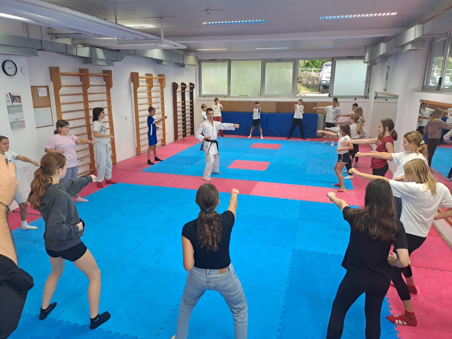 Učenici koji pohađaju izvannastavnu aktivnost Zdravstveni odgoj i obrazovanje u četvrtak 23. listopada posjetili su Karate klub “TAD” u Dvorani mladosti. Obje grupe u zajedničkom susretu imale su priliku isprobati ovu borilačku vještinu te se upoznati s njenom filozofijom.