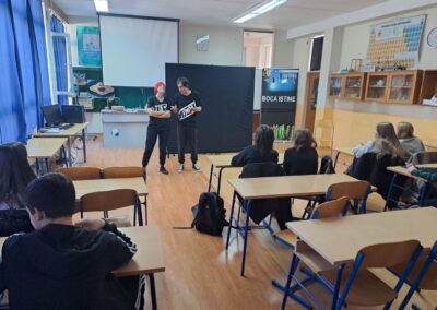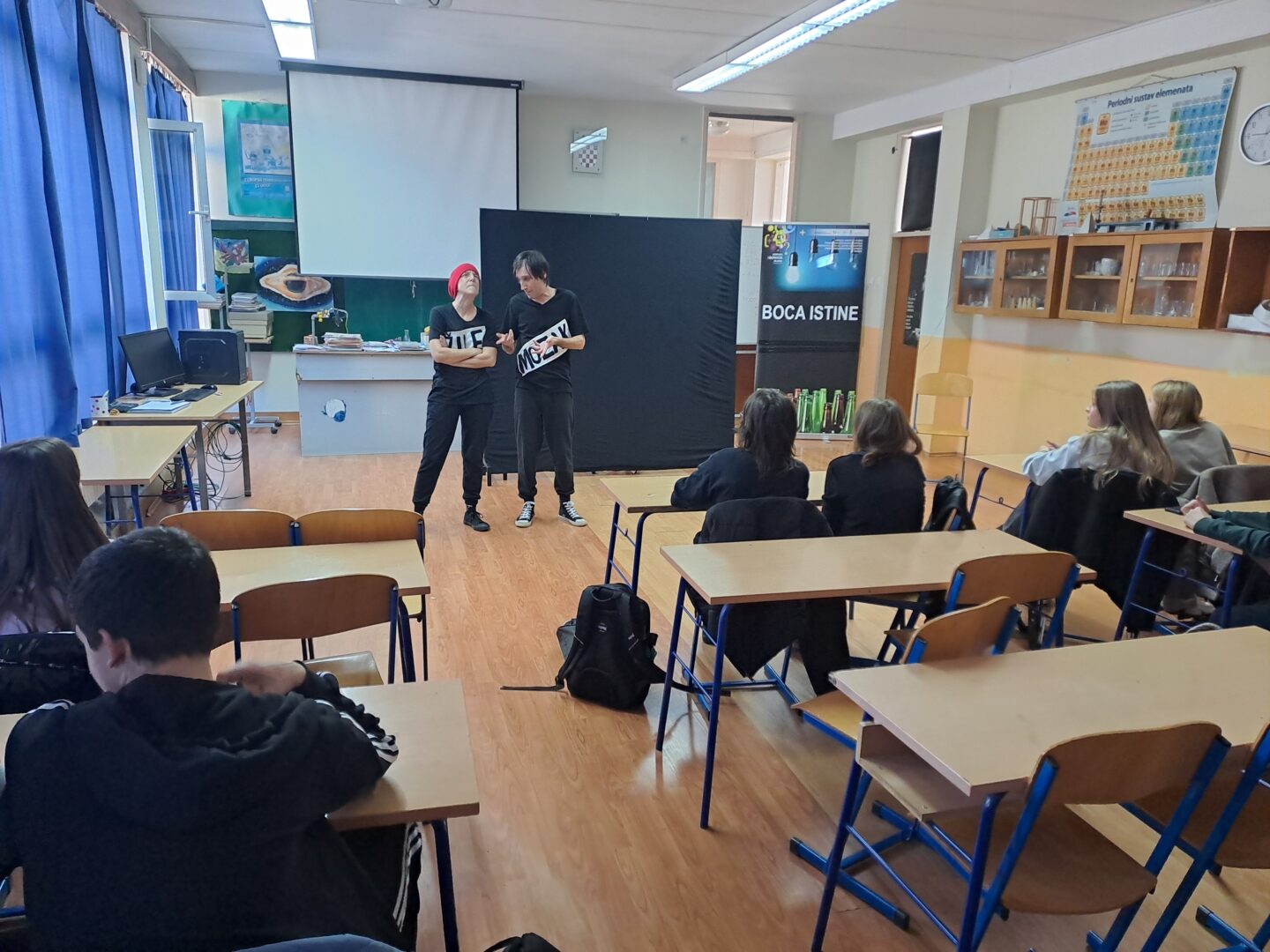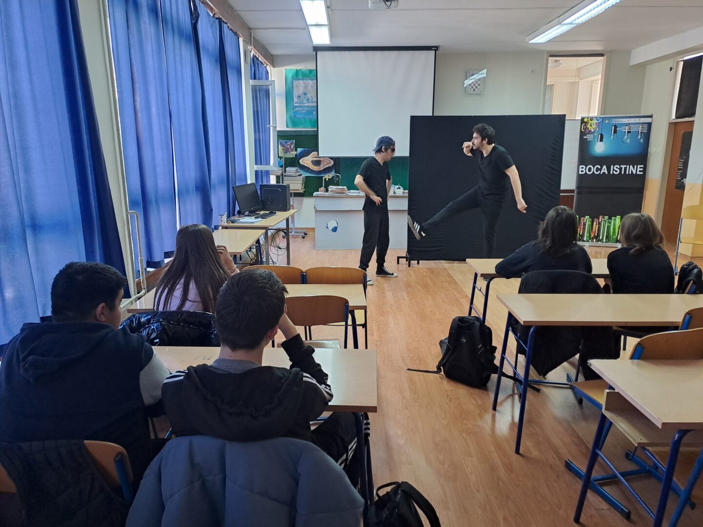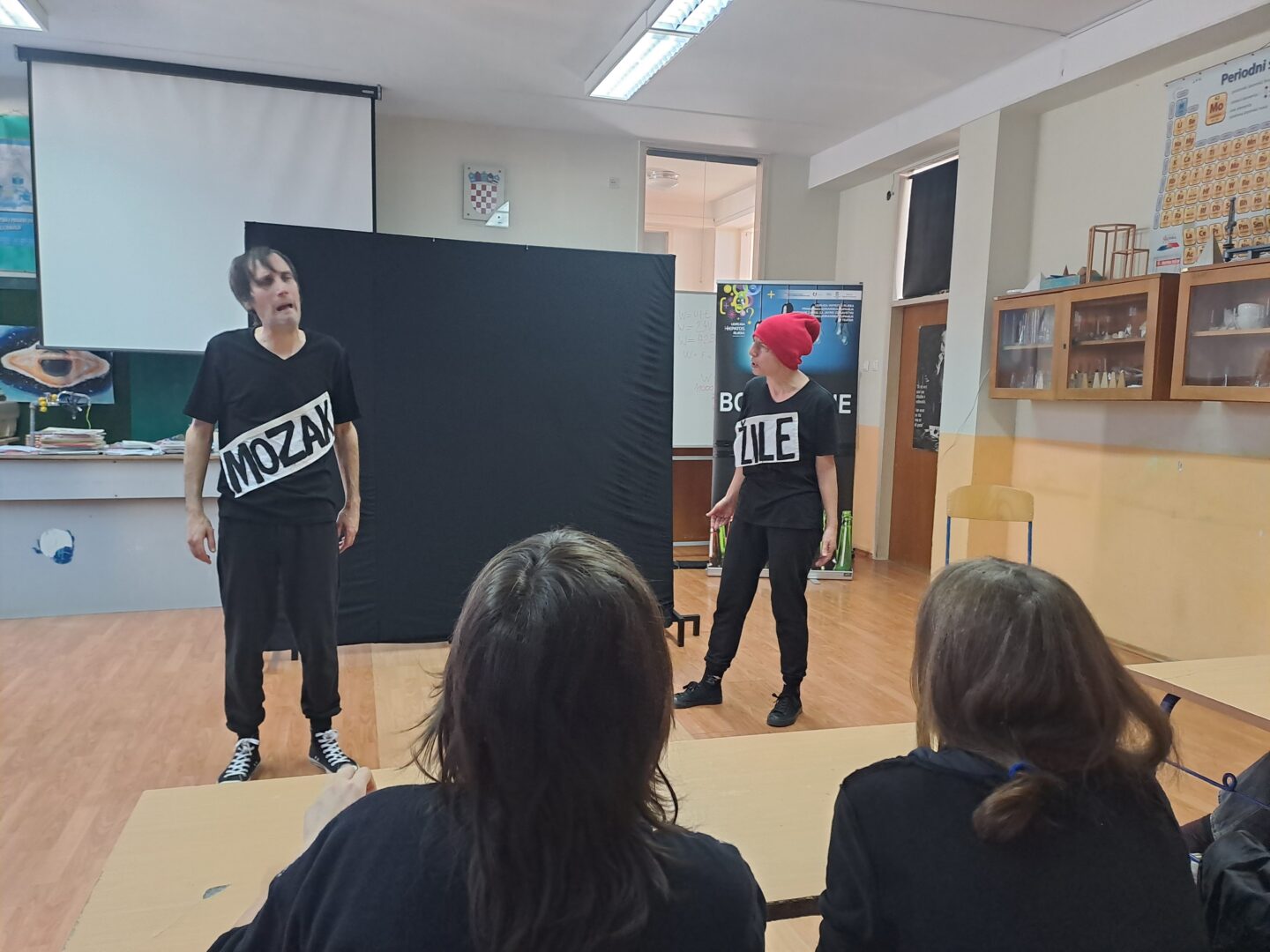U četvrtak 11. prosinca 2025. malo smo drugačije obradili temu ovisnosti o alkoholu u sklopu izvannastavne aktivnosti Zdravstvenog odgoja i obrazovanja. Naime, održana je edukativna predstava “Boca istine” u organizaciji Udruge Hepatos iz Rijeke. Predstava učenike na zanimljiv način educira o štetnosti konzumacije alkohola, tijeku ovisnosti te negativnim posljedicama na psihičko i tjelesno zdravlje, kao i na socijalne odnose, financijske probleme te druge aspekte svakodnevnog života. Poslije predstave održana je interaktivna radionica s učenicima. Fotografije možete pogledati u prilogu!
