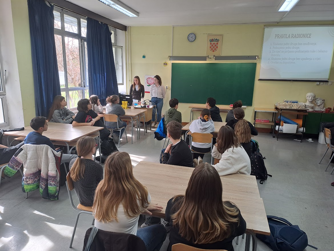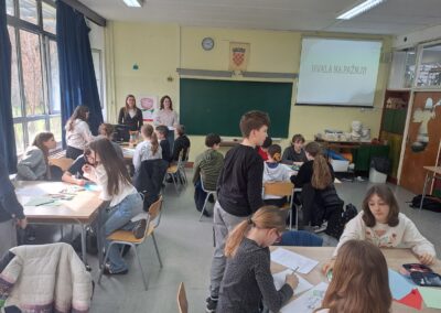 U petak, 13. ožujka 2026. za sve zainteresirane učenike od 5. do 8. razreda održala se radionica na temu suočavanja s neuspjehom i preoblikovanja negativnih automatskih misli. Radionicu su vodile studentice 5. godine psihologije Marta Kaluđerović i Željka Vincetić pod mentorstvom asist. Martine Bažon i naše psihologinje Lee Gegić. Radionica se održala u sklopu manifestacije “Rijeka psihologije” kojom se nastoji popularizirati psihologiju te pružiti zajednici korisne sadržaje sa svrhom osnaživanja mentalnog zdravlja i poboljšanja kvalitete života. Čak 25 zainteresiranih učenika napunilo je učionicu te uvježbavalo nošenje s neuspjehom i negativnim mislima koje nas nekad opterećuju. Pogledajte kako nam je bilo na fotografijama u prilogu!