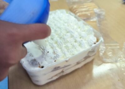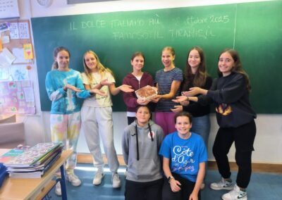 Učenice 7.b razreda su isplanirale i organizirale pripremu najpoznatijeg talijanskog kolača, tiramisua. Prvo su proučile recept, organizirale način pripreme i donijele na nastavu talijanskog jezika sastojke za pravi tiramisu. Kava, mascarpone, piškote, šlag i kakao bili su glavni sastojci a uz izradu, svirala je tradicionalna talijanska glazba.