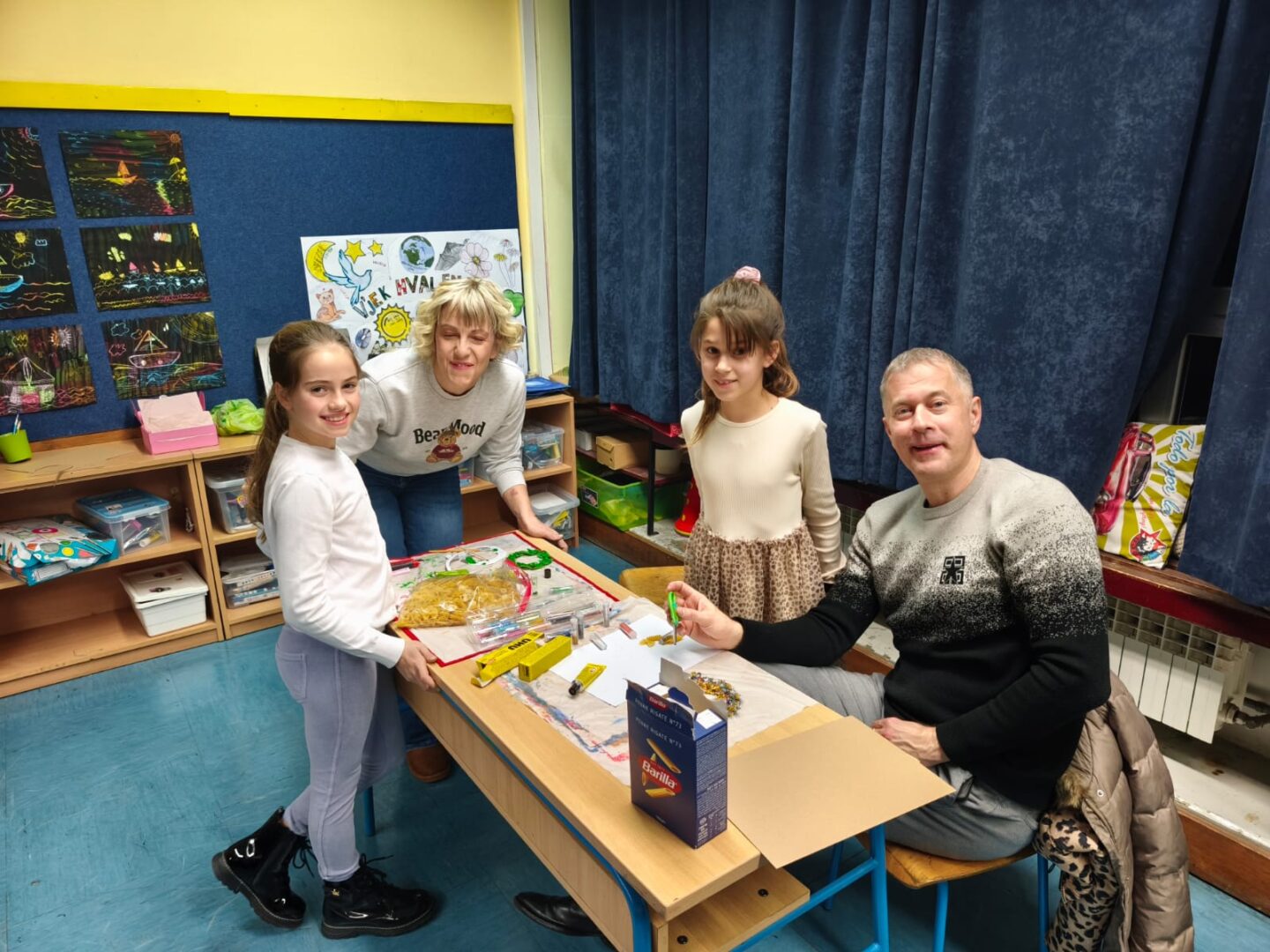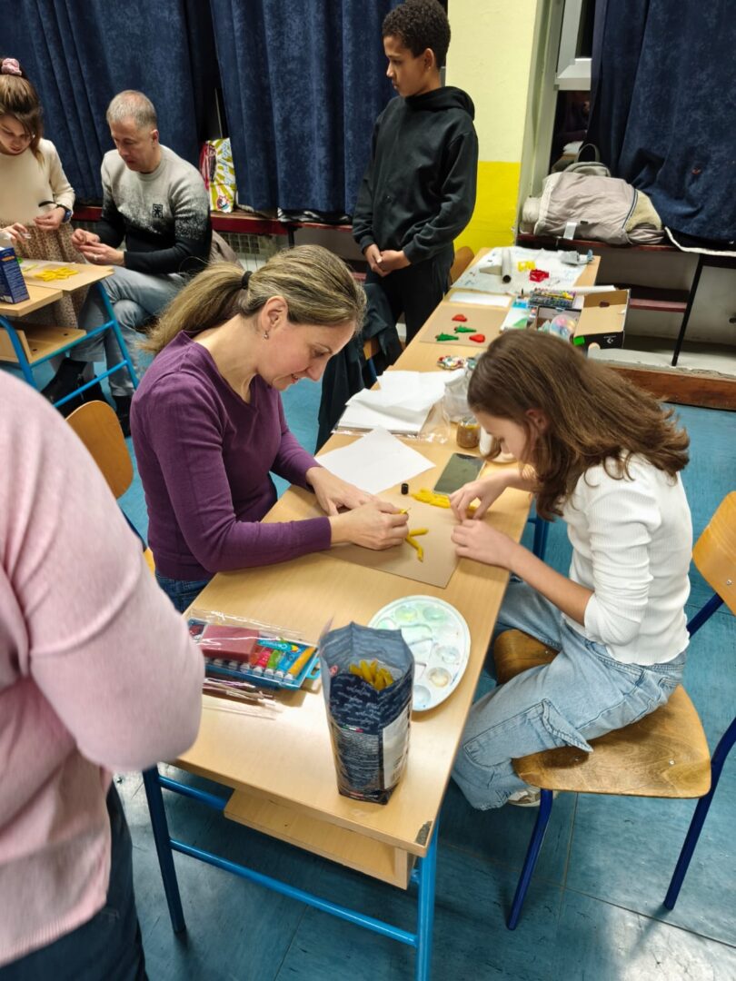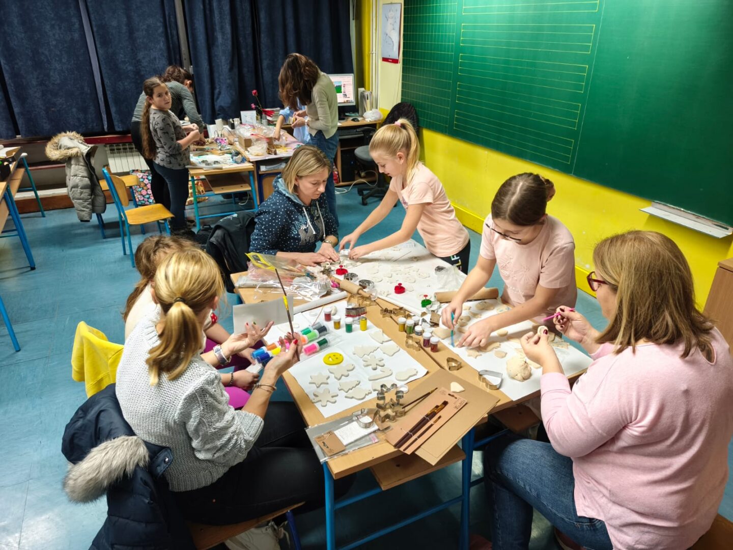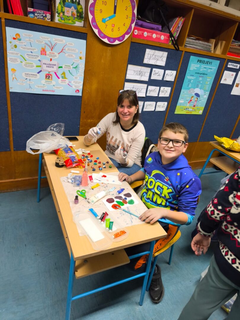 U utorak, 9. 12. 2025., učiteljica 4. b razreda Irena Dorčić organizirala je kreativnu radionicu s učenicima njenog razreda i njihovim roditeljima. Zajedničkim snagama, uz puno volje i dobro raspoloženje, izradili su predivne božićne ukrase. Duh blagdana ispunio je učionicu. Učenici i roditelji su stvarali, družili se i uživali u svakom trenutku. Zahvaljujući trudu djece i roditelja, nastali su jedinstveni ukrasi koji će još dugo podsjećati na ovo ugodno i toplo predblagdansko druženje.