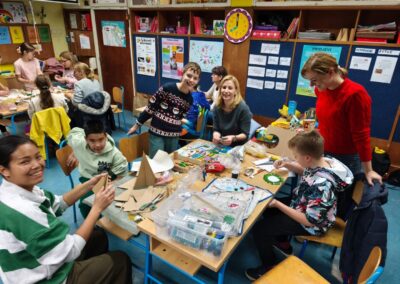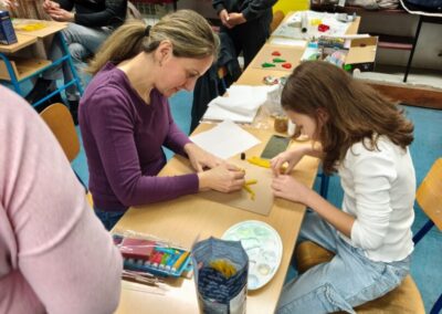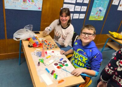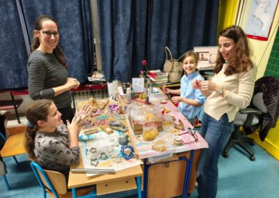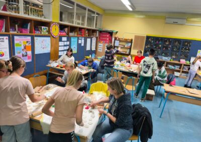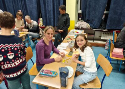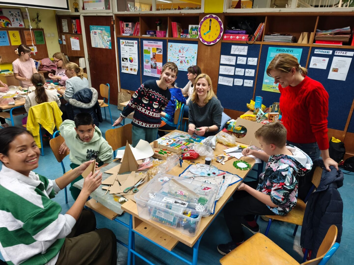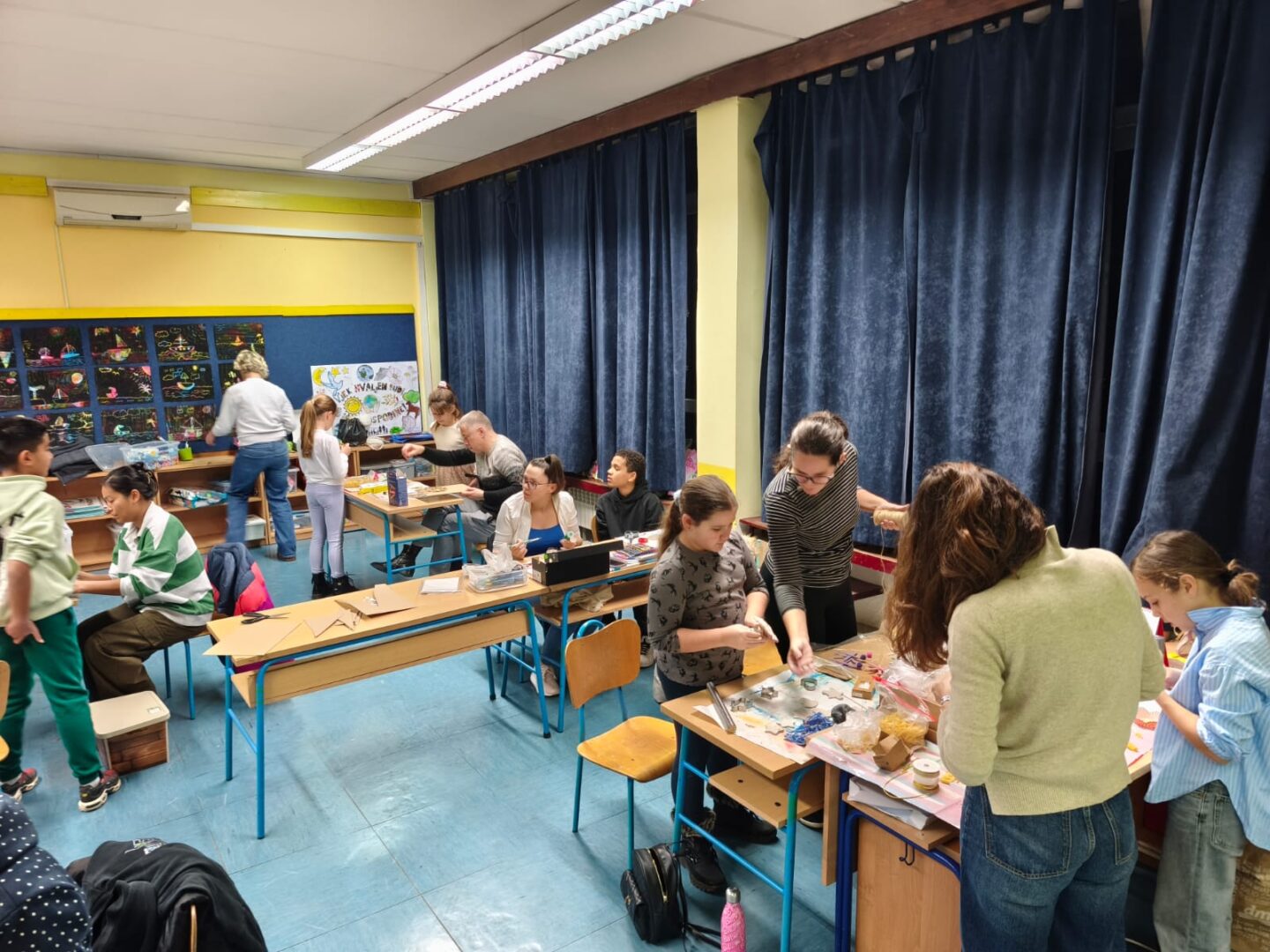 U utorak, 9. 12. 2025., učiteljica 4. b razreda Irena Dorčić organizirala je kreativnu radionicu s učenicima njenog razreda i njihovim roditeljima. Zajedničkim snagama, uz puno volje i dobro raspoloženje, izradili su predivne božićne ukrase. Duh blagdana ispunio je učionicu. Učenici i roditelji su stvarali, družili se i uživali u svakom trenutku. Zahvaljujući trudu djece i roditelja, nastali su jedinstveni ukrasi koji će još dugo podsjećati na ovo ugodno i toplo predblagdansko druženje.